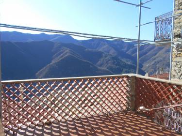 Casa indipendente con terrazzo panoramico in questo centro storico e pittoresco borgo collinare a soli 26 km dal mare. La casa è disposta su due piani, con tre cantine al piano seminterrato, ed è così composta - al piano terra un salottino con divano letto, camera matrimoniale e bagno; al primo piano un grande soggiorno luminoso con angolo cottura, caminetto, balcone con viste su tutta la vallata e spazioso terrazzo soleggiato. Riscaldamento a gas e stufa a pellet. Classe Energetica G IPE 344.75